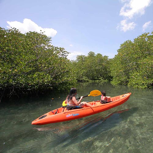 Sagrada & Kaniki Island: At Bella Louise Guesthouse, you can start a journey through a labyrinth of untouched mangroves. If you are feeling adventurous, paddle out to Kaniki Island. It features a long, beautiful white sand beach and an abandoned (and guarded) resort that adds a mysterious atmosphere to your trip.